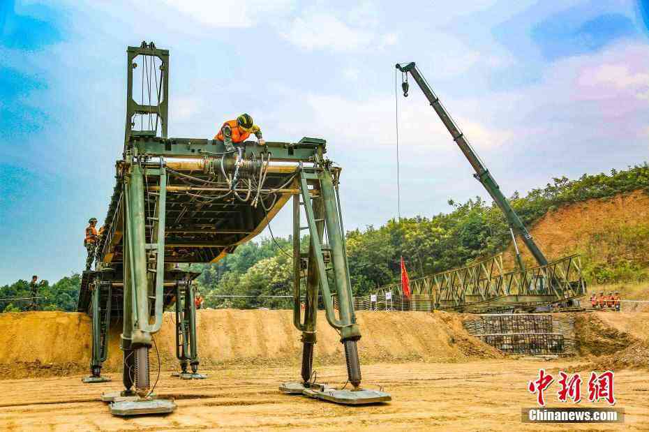 官兵同心協(xié)力架設(shè)鋼橋。余凱 攝