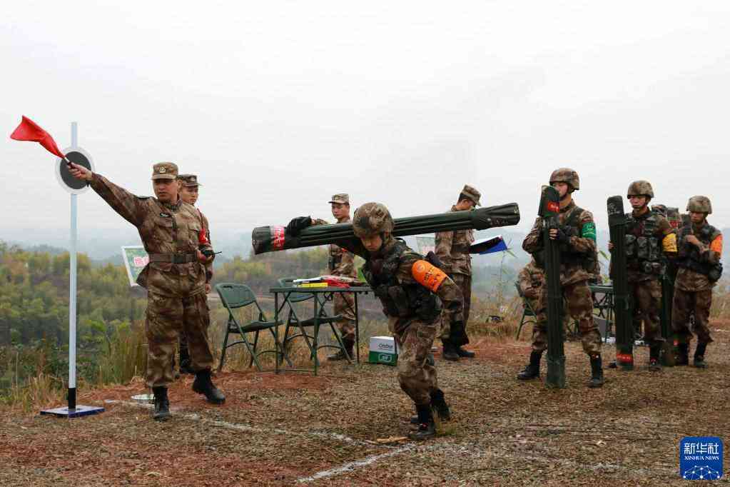 在“精武聯(lián)勤-2021”戰(zhàn)斗體能比武中,參賽隊員攜裝從起點出發(fā)(12月13日攝)。