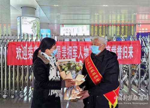 12月25日上午,2021年度安徽“最美擁軍人物”姚華亮載譽(yù)歸來(lái),在黃山北站,受到了安徽省休寧縣退役軍人事務(wù)局和東臨溪鎮(zhèn)的熱烈歡迎,并為他送上鮮花與祝福。