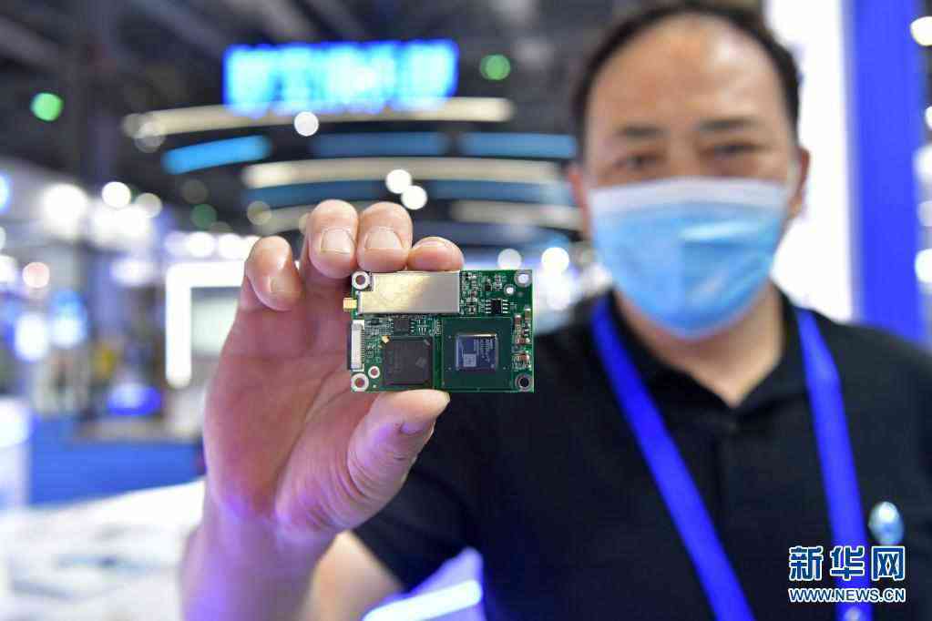 5月27日,參展商在博覽會上展示裝有抗干擾芯片的模塊。