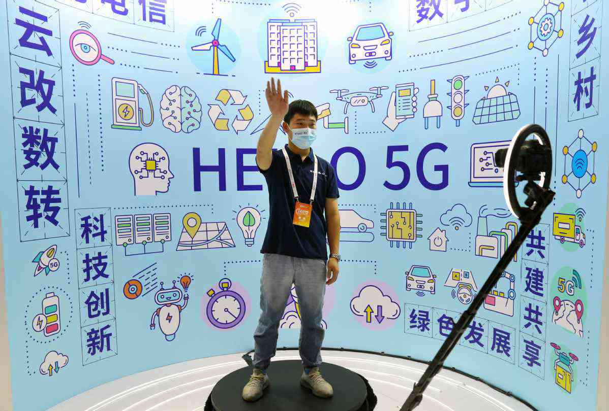 8月31日,參展商在大會展覽上演示5G+360度旋轉拍攝。 中國日報記者 朱興鑫 攝