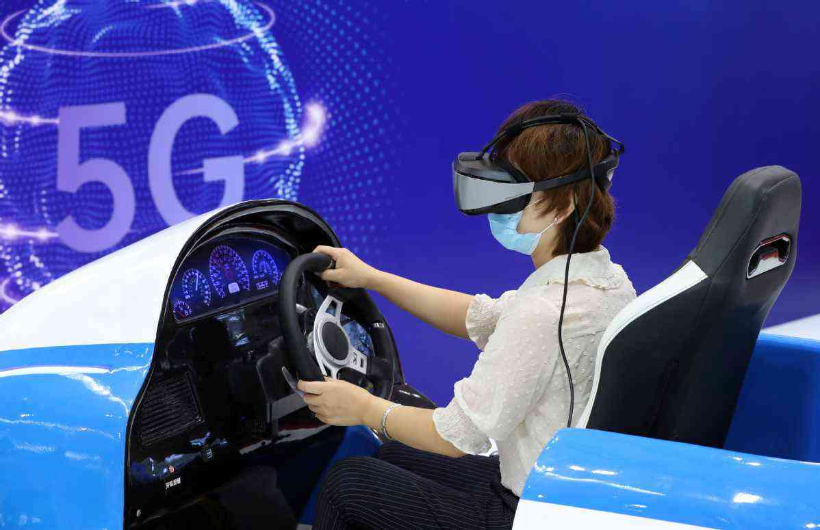 8月31日,嘉賓在大會展覽上體驗5G虛擬駕駛。中國日報記者 朱興鑫 攝