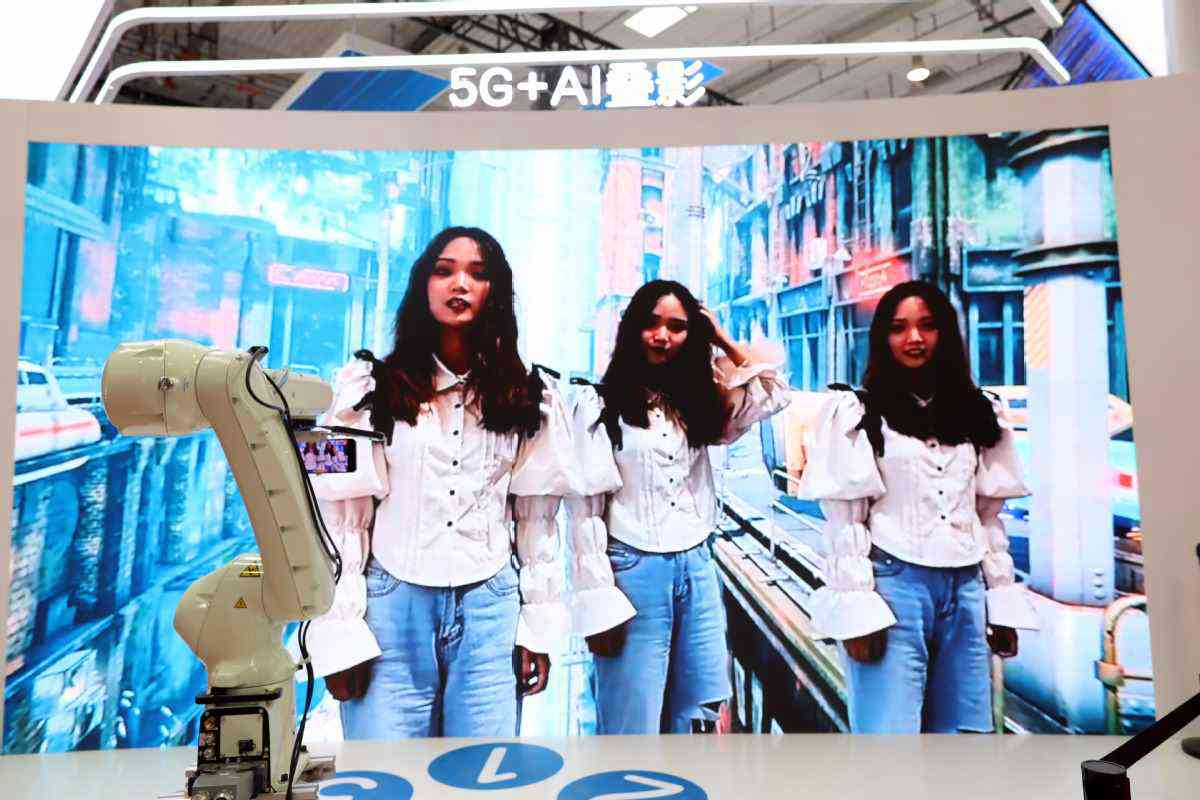 8月31日,拍攝大會展覽上5G+AI疊影技術。中國日報記者 朱興鑫 攝