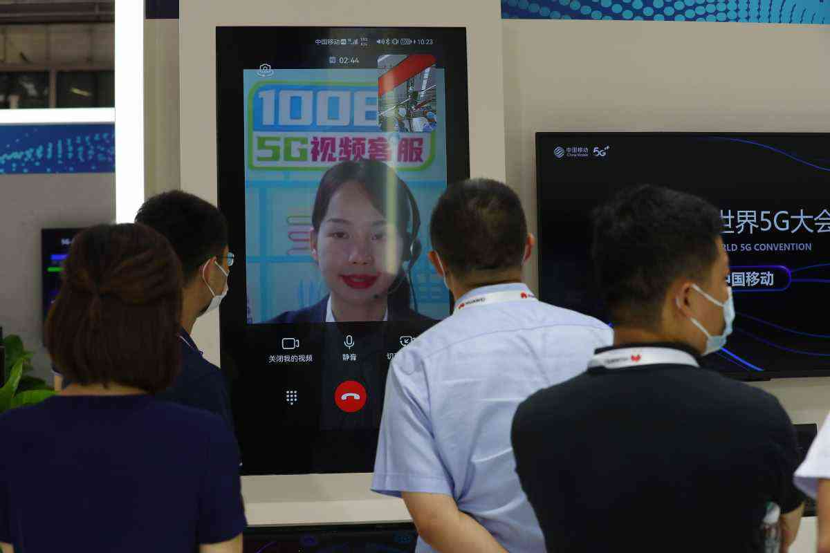 8月31日,嘉賓在大會展覽上觀看5G視頻客服演示。中國日報記者 朱興鑫 攝