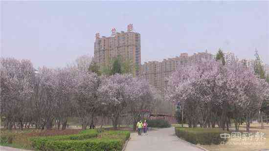 4月2日,記者走進競秀公園大門口,一棵開滿粉花的樹格外引人注目。記者看到,市民們或欣賞或拍照,把這美好的景色保留下來。