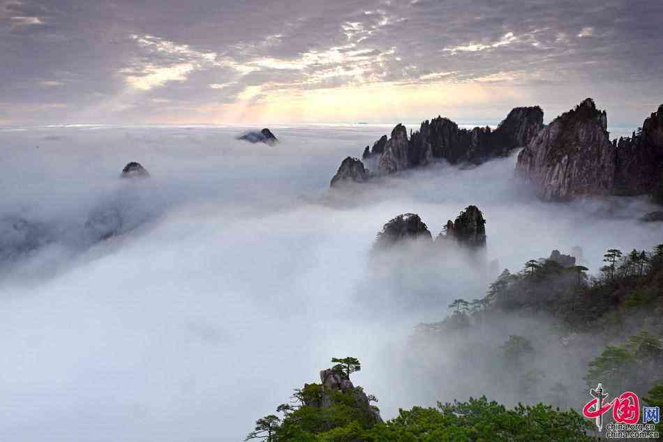 【點睛】五月初的黃山之巔才有初春的景象,樹掛新綠,空氣中彌漫著嫩綠和花兒的芳香;最絢麗的高山杜鵑花競相開放,峭壁上,深坳里,路旁邊,把黃山裝點得分外妖嬈,是這個季節(jié)最大的亮點