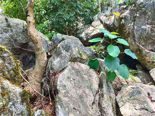 拐過幾道彎,我發(fā)現(xiàn)了一片楓樹林。應(yīng)該是缺土少水的原因,這些楓樹長得并不高大,頂多兩米左右。它們雖也盤根石上但依然長得很旺盛,清風(fēng)徐來,片片葉兒隨風(fēng)起舞,像是在表達(dá)它們的歡迎致意。