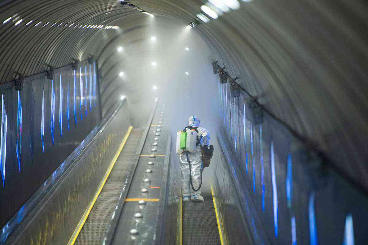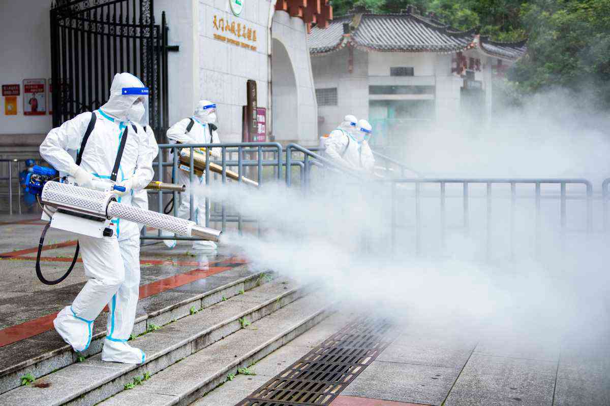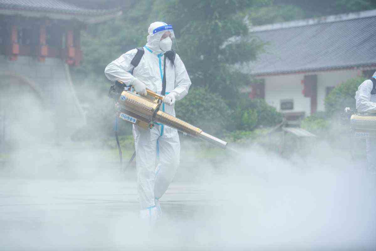 8月26日,在張家界天門山景區(qū)入口處,工作人員給排隊(duì)通道消毒。當(dāng)日,在湖南省張家界市天門山景區(qū),工作人員抓緊消殺作業(yè),為重新開園做好準(zhǔn)備工作。據(jù)了解,張家界市8月25日已全域調(diào)整為低風(fēng)險(xiǎn)地區(qū)。新華社記者 陳思汗 攝