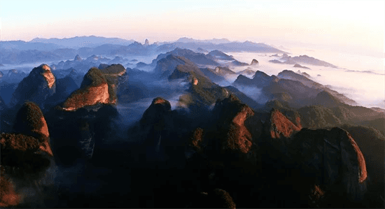走進(jìn)崀山,青山、綠水、紅崖交相輝映,辣椒峰、駱駝峰、將軍石等景點造型惟妙惟肖,栩栩如生。夫夷江水碧藍(lán)清透,從南往北蜿蜒而過。青瓦白墻的古式民居依山而建,成片的稻田隨四季變化而呈現(xiàn)出春綠秋黃的田園風(fēng)光。丹崖、青山、遺址、農(nóng)舍巧妙地結(jié)合,輝映成趣,相互襯托出一幅完整的自然畫卷。而崀山最美妙動人之處,是站在八角寨頂峰居高臨下俯瞰崀山丹霞全貌。放眼望去,跌宕起伏的丹霞峰叢波瀾壯闊,大氣磅礴,即使不用航拍器也能拍出航拍的感覺。