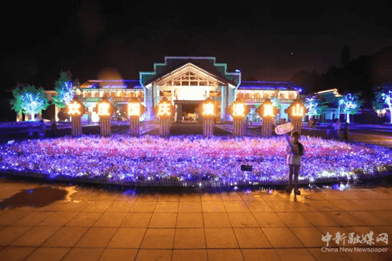 首先是國慶假日氛圍濃厚。假日期間,崀山各景區(qū)到處飄揚著鮮艷的五星紅旗,屋檐下、長廊邊掛滿了大紅燈籠。各景區(qū)電子屏滾動顯示歡度國慶的宣傳標(biāo)語,網(wǎng)絡(luò)廣播播放著振奮人心的紅色歌曲。北大門廣場上多了幾個巨大的花壇,里面五萬多盆不同顏色的鮮花擺成多組美麗的圖案,“歡度國慶,浪漫崀山”標(biāo)語前是游客最熱門的打卡地。到了夜晚,廣場周圍的景觀樹上霓虹燈不停地閃爍,古色古香的門樓屋頂,數(shù)條不同顏色的彩燈勾勒出優(yōu)美的線條。兩組八十米長的麥穗霓虹燈照亮了游客的笑臉,散發(fā)著黃色光芒的心型“告白亭”吸引了不少情侶互訴衷腸。整個北大門旅游服務(wù)區(qū)成為一個紅色海洋,歡樂的世界。
