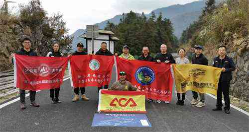 11月1日,山東、河南、浙江、江蘇、湖北、安徽等六省自駕游界專家在新安源頭皖贛交界的安徽省休寧縣鶴城鄉(xiāng)右龍嶺合影留念。(周曉國(guó) 盛紅兵)