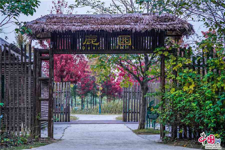水杉林對面是鹿園,園門將濕地最濃艷的一抹秋色“鎖住”,園里種植的美國楓葉以及其他彩林樹種,紅黃橙綠五彩點綴亭子與木棧道,雖是沒看見鹿,但收獲了最艷麗的濕地之秋。