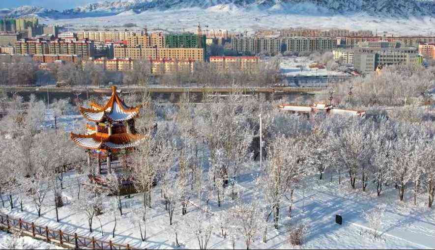 新疆阿勒泰地區(qū)富蘊(yùn)縣連日受降溫降雪天氣影響,出現(xiàn)雪凇冰掛景觀。樹梢上凝結(jié)的雪凇、冰掛,晶瑩剔透,美不勝收。