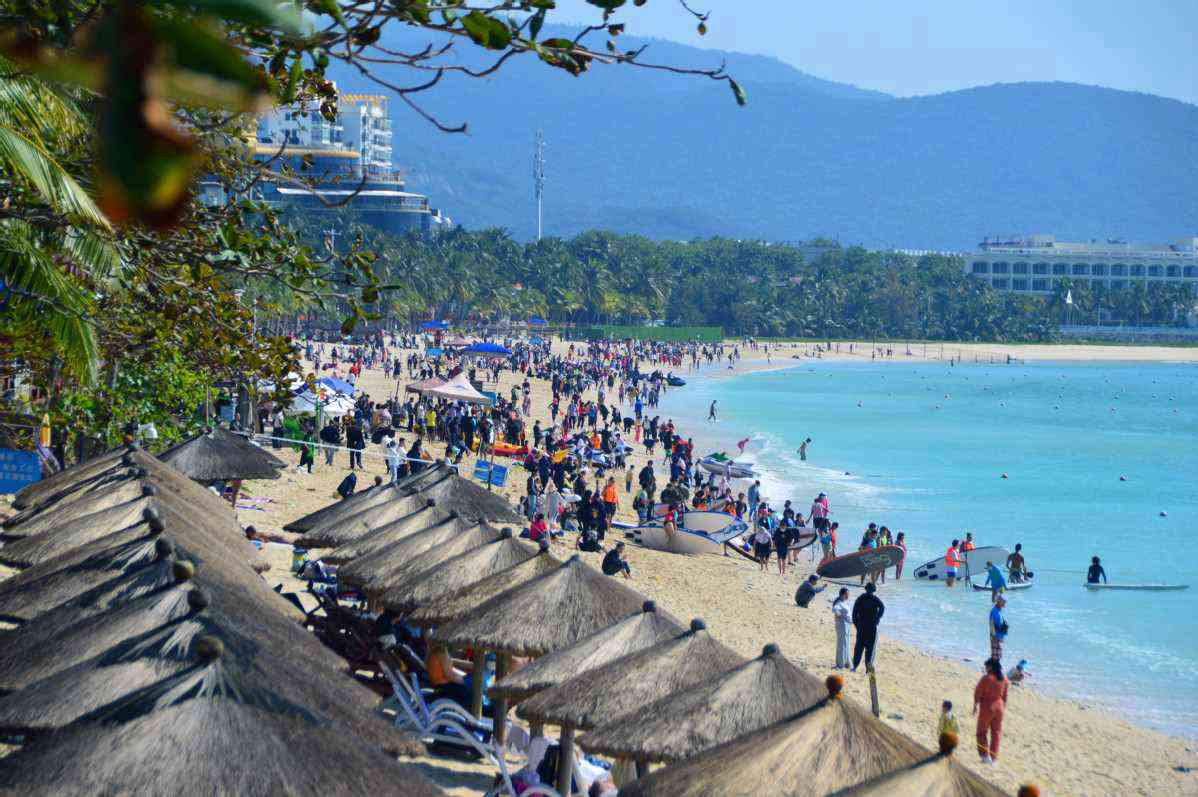 1月1日,海南省三亞大東海景區(qū),游客在海灘享受元旦假期。 孫清 攝