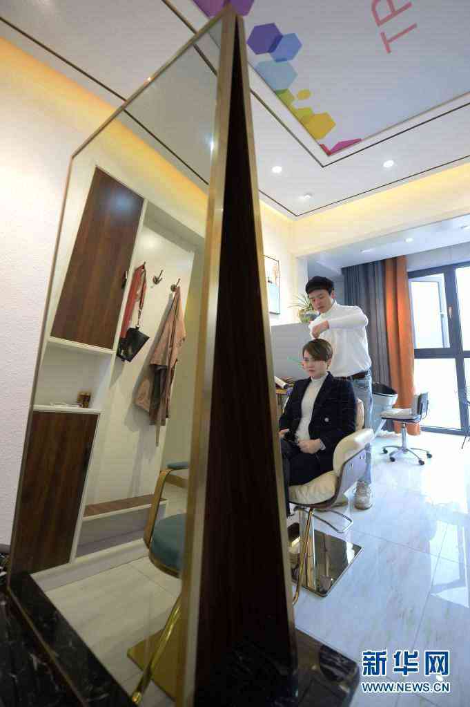 卓一航在自己的理發(fā)工作室給顧客設(shè)計(jì)發(fā)型(3月3日攝)。新華社記者 陳振海 攝
