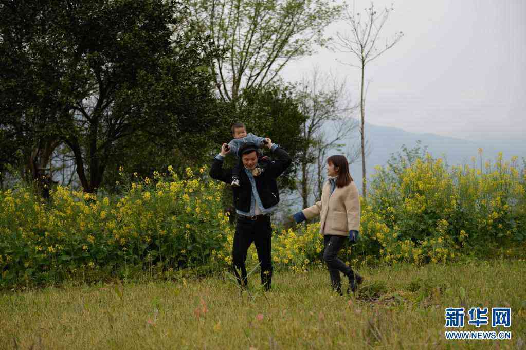 卓一航在慈利縣老家和妻子、兒子一起玩耍(3月20日攝)。新華社記者 陳振海 攝