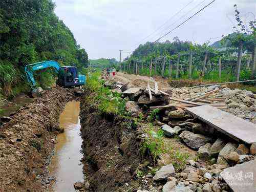 近日,休寧縣山斗鄉(xiāng)嶺腳路擴(kuò)面延伸工程中,一輛大型挖掘機(jī)正在河道旁挖掘道路護(hù)岸基礎(chǔ),還有幾位施工人員在搬運(yùn)石料,準(zhǔn)備砌筑道路護(hù)岸。