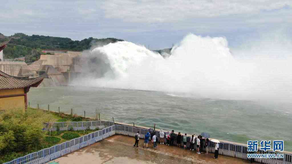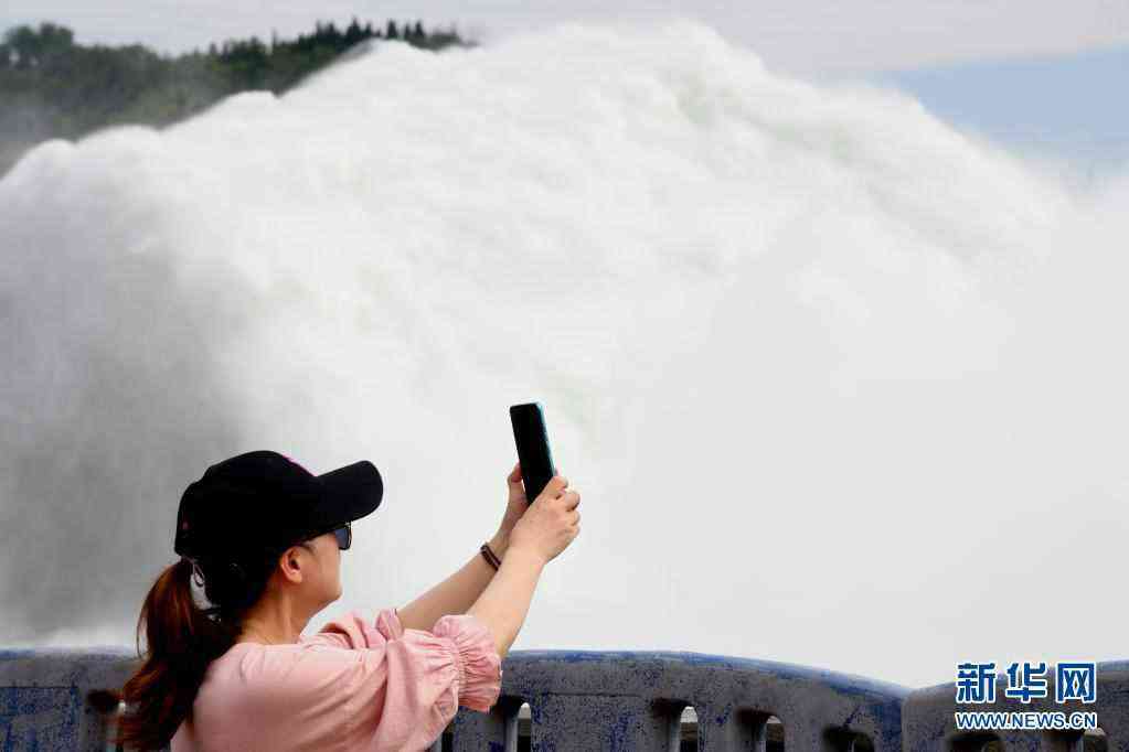 6月19日,游客在黃河小浪底水利樞紐工程出水口觀看調(diào)水調(diào)沙場景。新華社發(fā)(苗秋鬧攝)