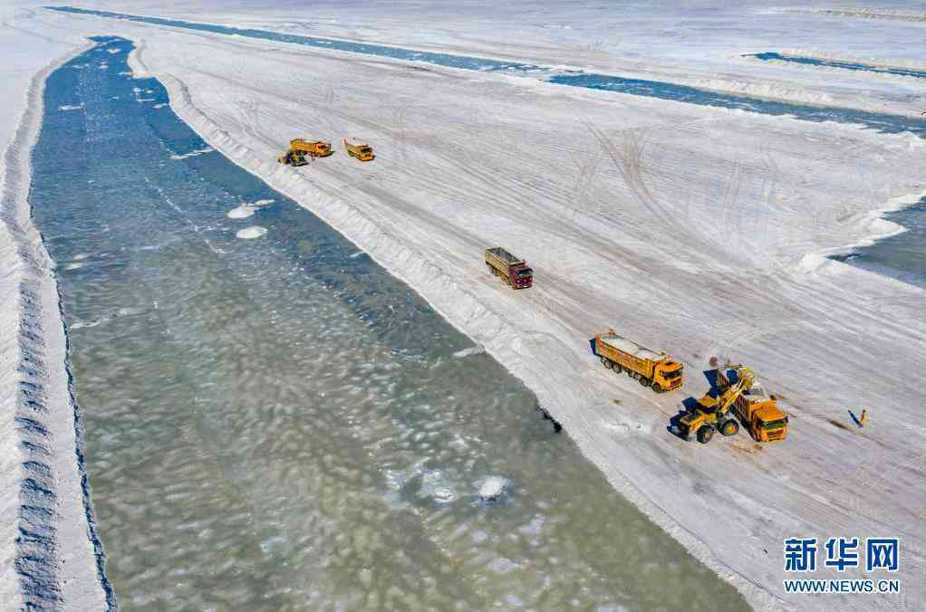 每年四月至十月是瑪納斯鹽湖的采鹽旺季,湖區(qū)內(nèi)機(jī)器轟鳴、車(chē)輛穿梭,一片繁忙景象。