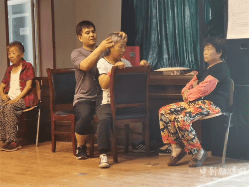 志愿工作者們?yōu)樯鐓^(qū)老人免費(fèi)提供測血壓血糖、理發(fā)、按摩服務(wù)。醫(yī)務(wù)服務(wù)志愿者為老人測血壓血糖,“血糖7.6,在正常范圍”“血壓正常,血糖偏高,少吃甜食”等簡單的話溫暖著社區(qū)老人的心,理發(fā)和按摩師傅們同樣熱情周到地為老人服務(wù)著。在場的老人們和志愿工作者都快樂高興,活動氛圍和睦。