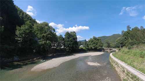 在新安源頭鶴城鄉(xiāng),清澈的大源河,碧波漣漣,河水潺潺;兩岸青山、古木,青翠成蔭,小橋、流水、田園、人家,鑲嵌其間,儼然一幅美麗的鄉(xiāng)村畫卷。