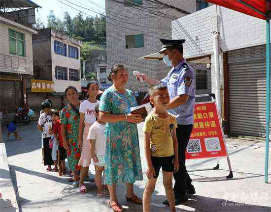 9月4日,湖南省保靖縣公安局的清水坪派出所的民警在清水坪鎮(zhèn)野竹坪小學(xué)協(xié)助學(xué)生報(bào)名。當(dāng)天,該縣學(xué)生報(bào)名開學(xué),該縣公安局組織民警輔警加強(qiáng)各中小學(xué)、幼兒園周邊執(zhí)勤巡邏工作,維護(hù)校園安全和周邊交通暢通,護(hù)航學(xué)生安全順利返校。(俞采華  張昌峰)