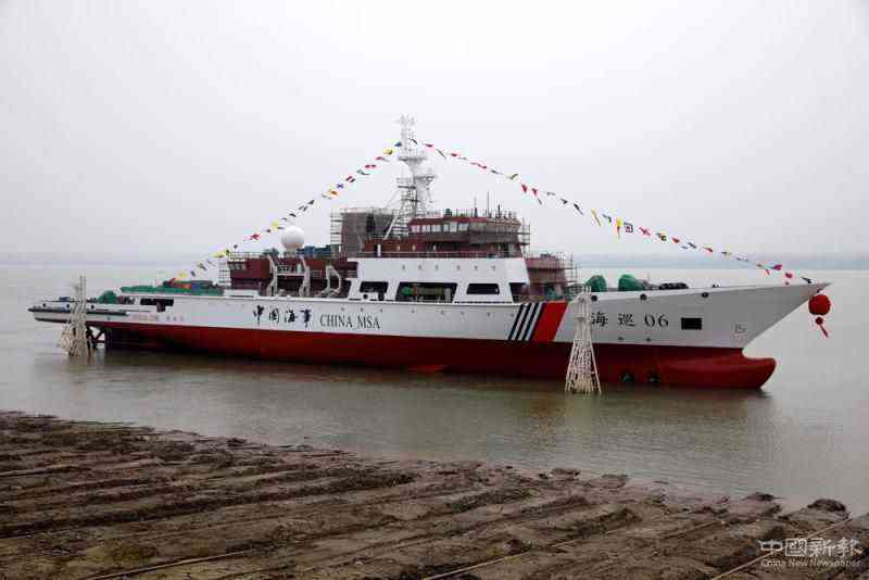 圖:臺(tái)海首艘5000噸級(jí)大型海事巡航救助船“海巡06”輪8日在武漢基地下水。\中新社