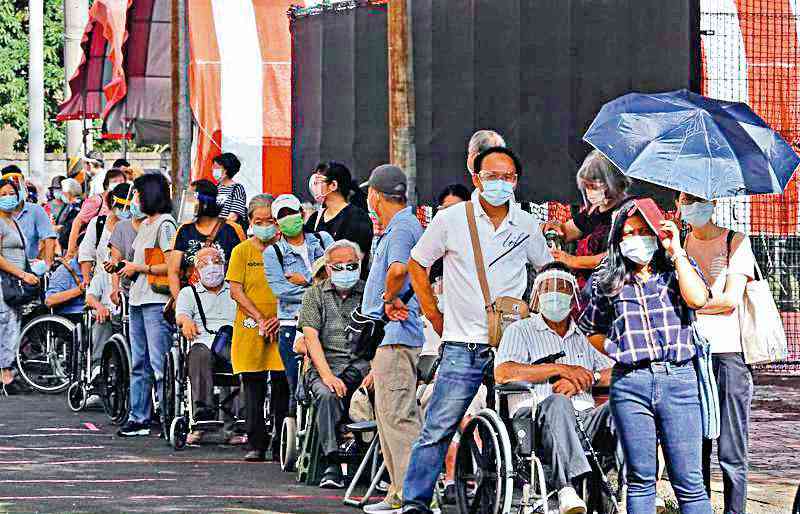 圖:島內(nèi)長(zhǎng)者15日起接種疫苗,但排隊(duì)人潮并未保持社交距離。\聯(lián)合新聞網(wǎng)