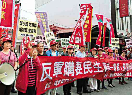 圖:臺(tái)灣民眾舉行集會(huì)批評(píng)臺(tái)當(dāng)局向美國(guó)購(gòu)買武器破壞臺(tái)海和平。\資料圖片