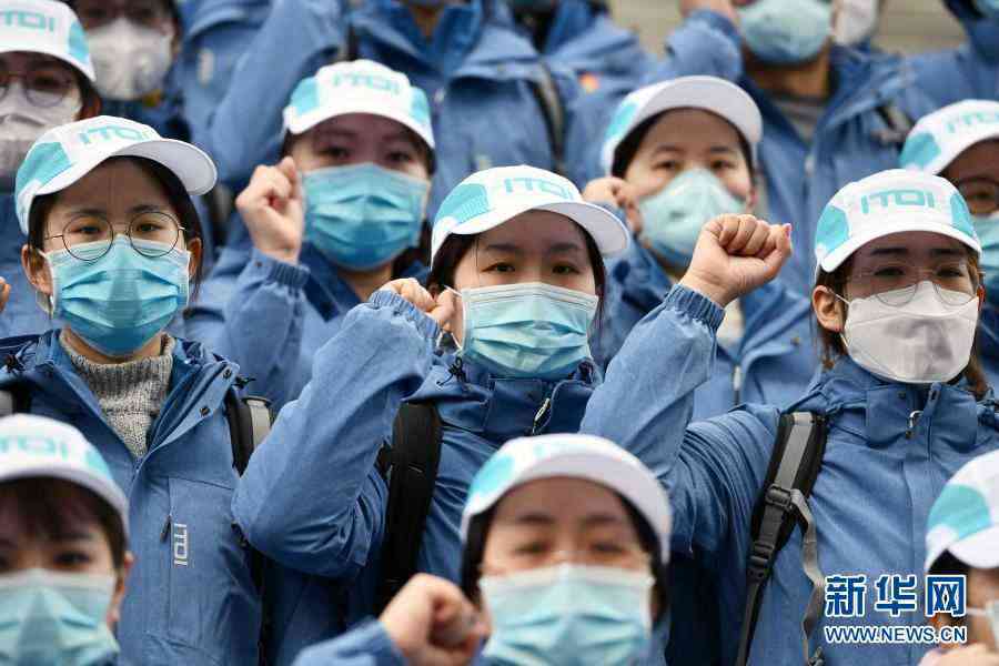 2020年2月9日,在山東濟南,山東大學第二醫(yī)院支援湖北抗疫國家醫(yī)療隊中的黨員在出發(fā)前重溫入黨誓詞。新華社記者 朱崢 攝