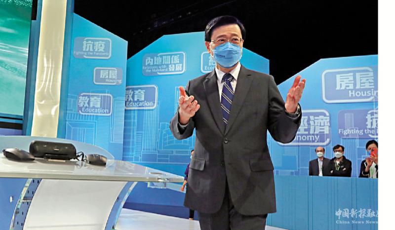 圖:李家超昨日出席由香港七間電子媒體舉辦的“2022行政長(zhǎng)官選舉答問(wèn)會(huì)”。