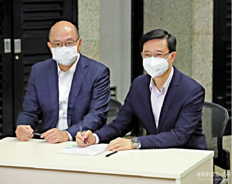圖:李家超昨日簽署法定聲明,表明不屬于任何政黨,并承諾在特首任期內(nèi)不會(huì)成為任何政黨的成員。\大公報(bào)記者何嘉駿攝