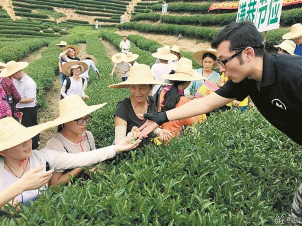 余威在茶山向來訪客人分享采茶技巧(受訪者供圖)