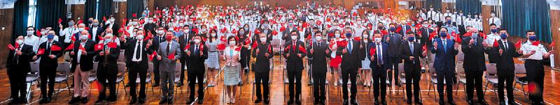 培僑中學(xué)昨日在學(xué)校禮堂內(nèi)舉行慶祝香港回歸祖國(guó)25周年升國(guó)旗儀式,保安局局長(zhǎng)鄧炳強(qiáng)、教育局局長(zhǎng)蔡若蓮、中聯(lián)辦教科部副部長(zhǎng)徐凱、警務(wù)處處長(zhǎng)蕭澤頤及東區(qū)民政事務(wù)專員陳尚文出席儀式,并與學(xué)校師生一起目視國(guó)旗、唱國(guó)歌。鄧炳強(qiáng)表示,升旗儀式有助增強(qiáng)學(xué)生對(duì)國(guó)家的歸屬感和自豪感,他還鼓勵(lì)學(xué)生積極參加青少年制服團(tuán)隊(duì),以培養(yǎng)守法意識(shí),加強(qiáng)國(guó)民身份認(rèn)同。蔡若蓮盼與業(yè)界同工繼續(xù)攜手推動(dòng)國(guó)民教育,為年輕一代搭建更寬廣的舞臺(tái)。