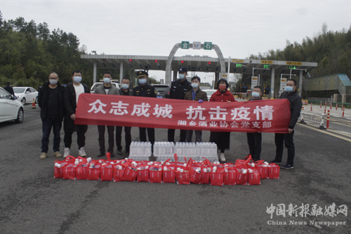 湘鄉(xiāng)市酒業(yè)協(xié)會將愛心物資送到高速金石收費站