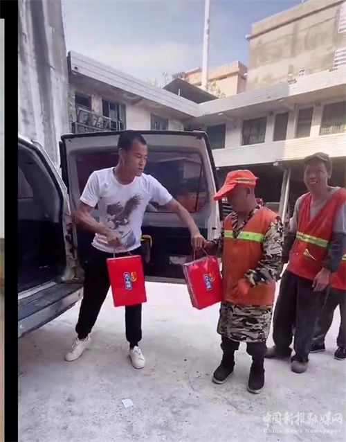 在高沙鎮(zhèn)環(huán)衛(wèi)所大院內(nèi),“高沙一塊田”唐科向環(huán)衛(wèi)工人們表達(dá)了真誠(chéng)的感謝!他說(shuō):“各位叔叔、阿姨們,你們好,今天,我把大家叫到一起,沒(méi)有別的意思,就是感謝你們一直以來(lái)對(duì)高沙這塊土地默默無(wú)聞的付出,你們辛苦了!今天這么熱的天,再好的城市,再好的城市建設(shè),沒(méi)有你們長(zhǎng)期的精心呵護(hù),那有我們每天開(kāi)心舒服的生活環(huán)境。我為大家每人準(zhǔn)備了一箱牛奶送給你們以表感謝。