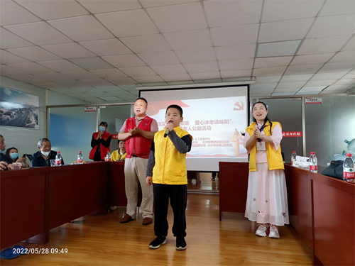 九點半,主持人黃可宣布活動正式開始并簡短地介紹了長沙縣愛的擺渡人義工發(fā)展中心,緊接著,田漢社區(qū)相關(guān)人員代表社區(qū)感謝大家的到來。隨后,果園鎮(zhèn)文化站站長史潤東帶領(lǐng)文化站的演員們現(xiàn)場表演了最受老人歡迎的花鼓戲,他們的精彩演出贏得全場掌聲不斷。82歲高齡的孤寡老人田山爹即興演唱了《四季歌》和《誰不說俺家鄉(xiāng)好》,老人家精氣神十足的獻(xiàn)“聲”把現(xiàn)場氣氛推向了另一個高潮。整場文藝表演在小義工胡瑞晨演繹的一首《我們是共產(chǎn)主義接班人》的歌聲中完美落幕。