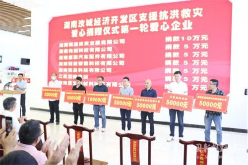 在災后重建、物資緊缺的關鍵時期,汝城經(jīng)濟開發(fā)區(qū)眾多企業(yè)和愛心人士紛紛捐款捐物獻愛心,截止6月10日,汝城經(jīng)濟開發(fā)區(qū)共有82家企業(yè)、3個黨支部、53名愛心人士參與了此次抗洪救災募捐活動,各企業(yè)和愛心人士其捐贈款物520余萬元,其中,捐款156.02萬元,捐贈物資371.76萬元。