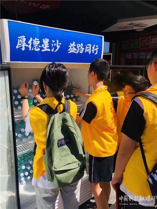 當(dāng)天上午,長(zhǎng)沙市麓山國(guó)際實(shí)際學(xué)校C2008班的同學(xué)們?cè)诎嘀魅卫钋诶蠋煹慕M織帶領(lǐng)下,將同學(xué)們自發(fā)籌款購(gòu)買的100件愛心礦泉水送到了通程商業(yè)廣場(chǎng)星沙店,助力“厚德星沙,益路同行”長(zhǎng)沙縣全城送清涼公益活動(dòng)。一瓶瓶小小的礦泉水,飽含著同學(xué)們對(duì)高溫下戶外工作者們的一份份關(guān)愛。