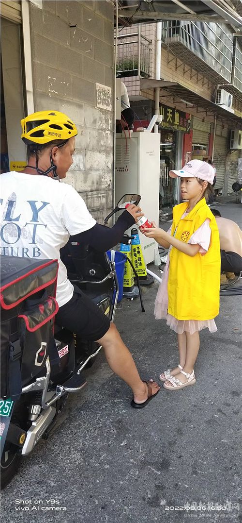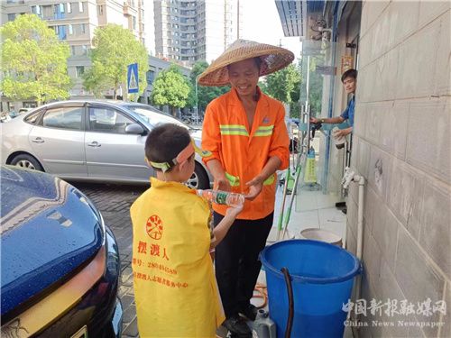 為了向高溫天氣奮戰(zhàn)一線的戶外工作者表達(dá)衷心的感謝,也讓孩子們體會戶外工作者們的艱辛。8月6日,長沙縣愛的擺渡人義工發(fā)展中心聯(lián)合芙蓉區(qū)小桔燈少兒成長中心共同開展了給烈日下的戶外工作人員“送清涼”公益活動。