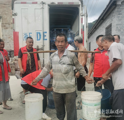 雙溪村共有13個村民小組,1400多人,其中不乏留守老人和兒童。8月21日中午,舉辦單位組織滿載“甘霖”的送水車3臺,送去桶裝水800桶。山門鎮(zhèn)副鎮(zhèn)長彭武、雙溪村黨支部書記張育生早已組織好村委委員、各組組長及黨員在現(xiàn)場等候,大家頂著烈日,分多個送水點,有條不紊地為村民送水上門,整個中午不休息、不停留,堅持3個多小時把水發(fā)完。汩汩清水流入村民的水桶中,也流到了村民的心田里。