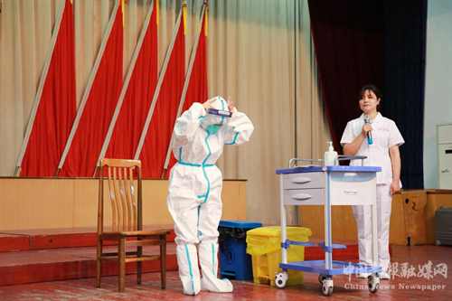 現(xiàn)場觀摩“穿脫防護(hù)服”。(鄢振輝攝)