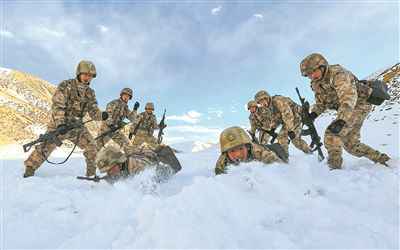 1月4日,陸軍某團(tuán)官兵在雪地中開展單兵戰(zhàn)術(shù)比武。劉曉東攝