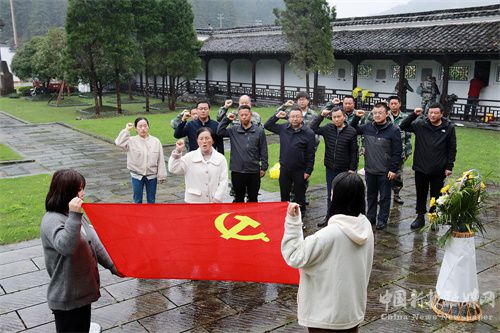 烈士陵園松柏青翠、莊嚴(yán)肅穆。在烈士陵墓前,全體黨員和退役軍人“紅耀江淮”志愿服務(wù)隊(duì)員冒著大雨,整齊列隊(duì),懷著對(duì)英烈的無(wú)限哀思和崇敬之情,清理墓區(qū)雜草,擦拭烈士墓碑、向烈士敬獻(xiàn)花籃和鮮花,表達(dá)對(duì)先烈們的緬懷之情,并重溫了入黨誓詞,再次立下了對(duì)黨的錚錚誓言。