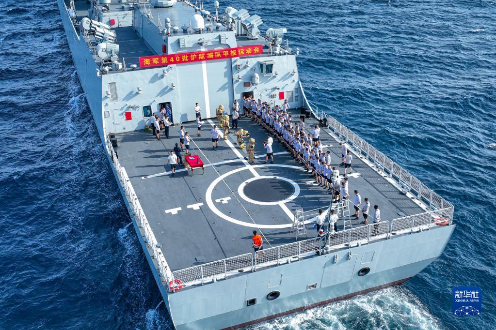 航渡途中,中國海軍第40批護(hù)航編隊(duì)舉辦甲板運(yùn)動(dòng)會(huì),豐富官兵海上生活(2月6日攝)。