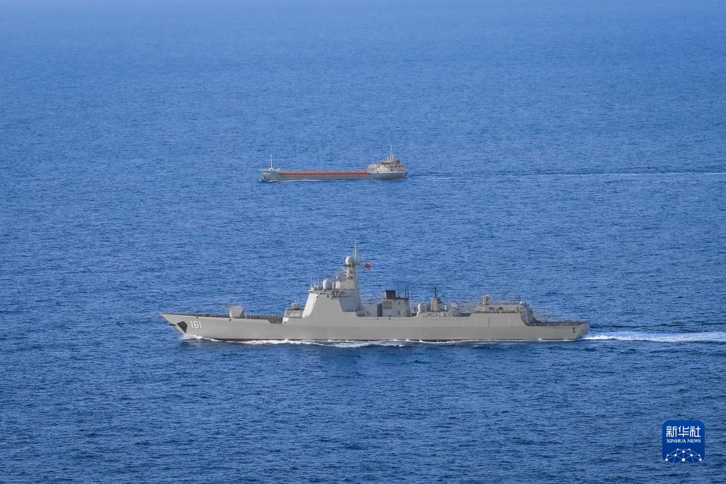中國海軍第40批護(hù)航編隊(duì)首次執(zhí)行護(hù)航任務(wù),這是呼和浩特艦(下)在為 “旅行者”號(hào)護(hù)航(2月12日攝)。