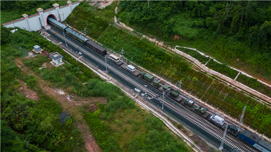 7月19日,我軍衛(wèi)生列車(chē)抵達(dá)老撾北部邊境城鎮(zhèn)磨丁。 新華社發(fā)(凱喬攝)