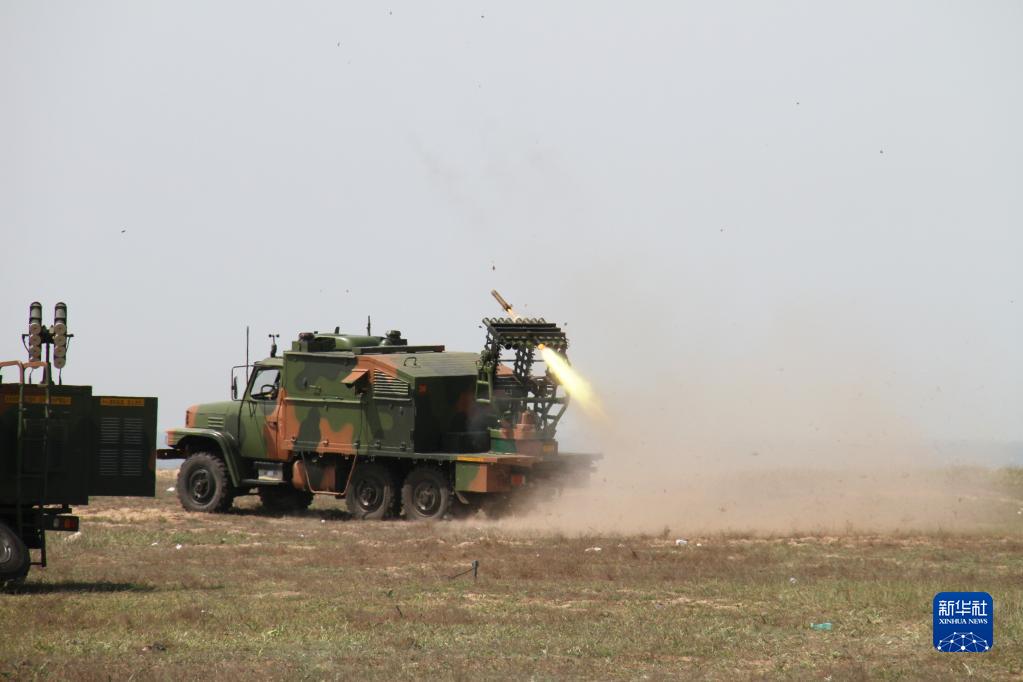 海軍某試驗(yàn)訓(xùn)練區(qū)組織駐訓(xùn)演練,岸基兵力發(fā)射光電干擾彈進(jìn)行火力打擊(2014年5月17日攝)。新華社發(fā)(孔一鳴 攝)