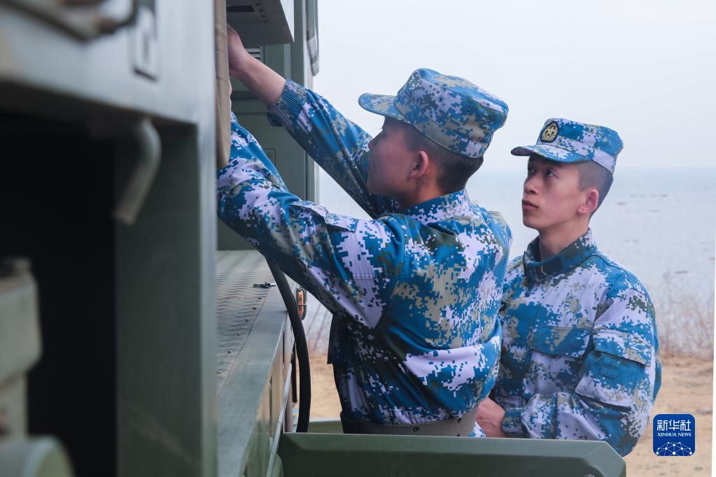 海軍某試驗(yàn)訓(xùn)練區(qū)參試官兵檢查裝備技術(shù)狀態(tài)并現(xiàn)場記錄試驗(yàn)數(shù)據(jù)(2019年3月2日攝)。新華社發(fā)(王雷 攝)