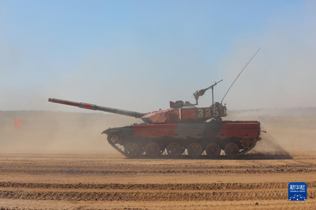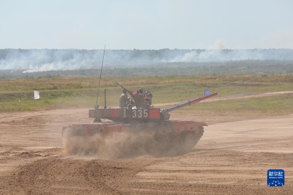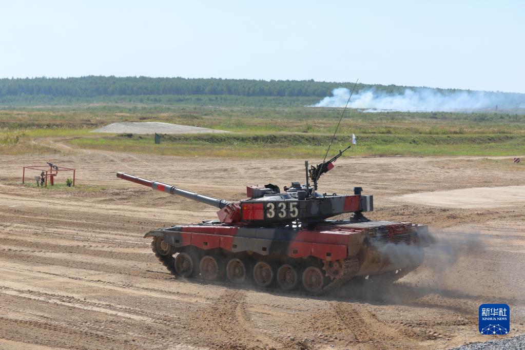 8月24日,在俄羅斯莫斯科州阿拉比諾靶場(chǎng),中國(guó)參賽隊(duì)96B坦克在比賽中。新華社發(fā)(羅坤攝)